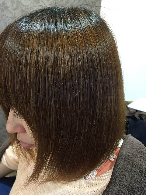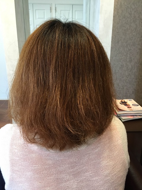 カラーリングもカットもしてない仕上がりですが、痛みが取れた様にみえませんか?
